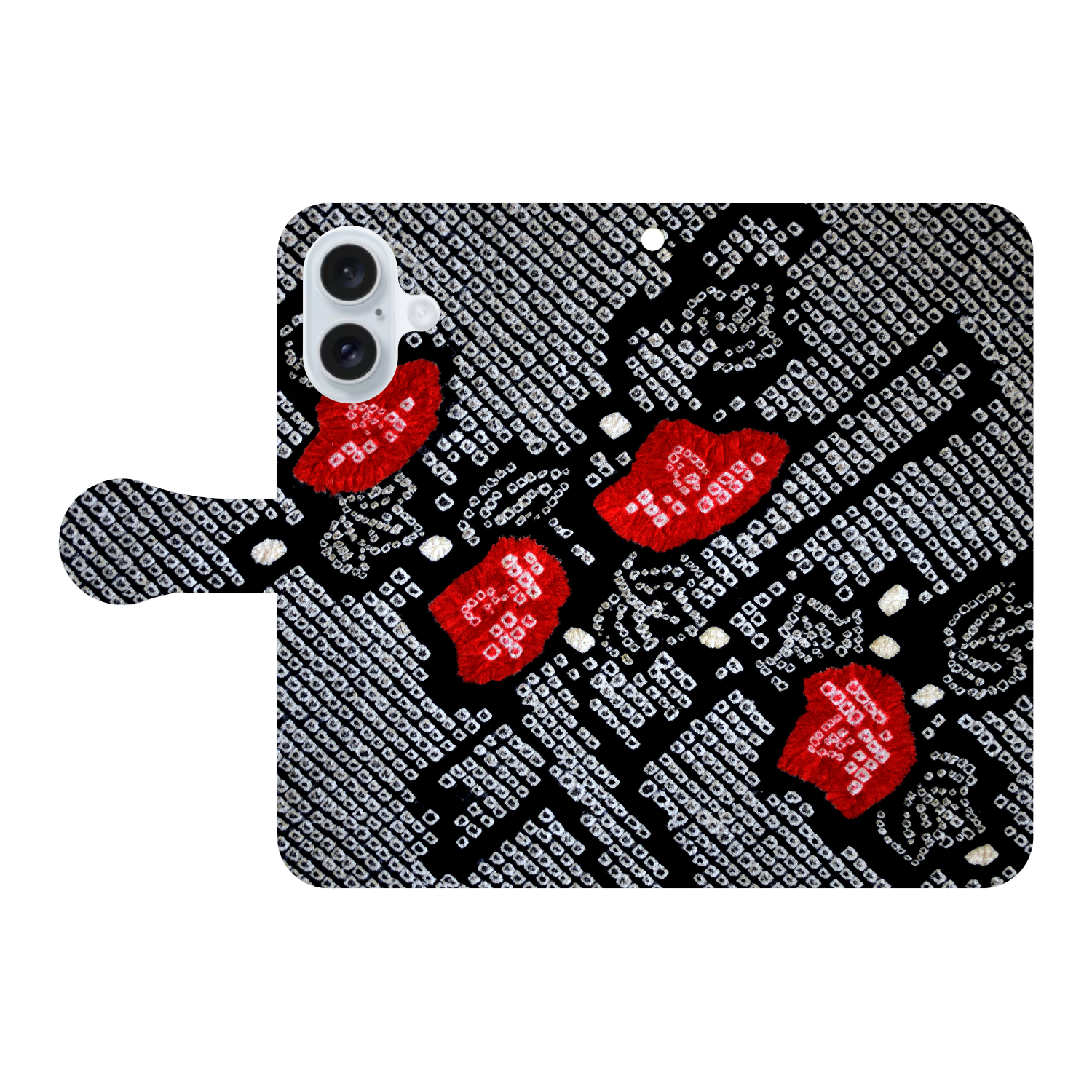 和柄 iPhoneケース 手帳型 9491【鹿の子絞り柄】